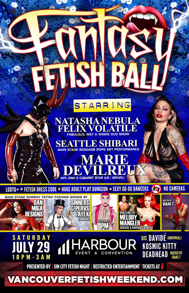 Before attending events at Vancouver Fetish Weekend, please take a look at our code of conduct, established to make sure all attendees have a fun, sexy, and safe time. We also have a no photo policy to ensure everyone’s privacy, although our official event photographers will be on hand if you want to capture the moment. Read more about our photo policy and your privacy here.